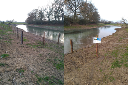 Des clôtures ont été posées en fin d'année 2022 pour éviter le piétinement des berges, tout en maintenant un accès aux bovins pour l’abreuvement.